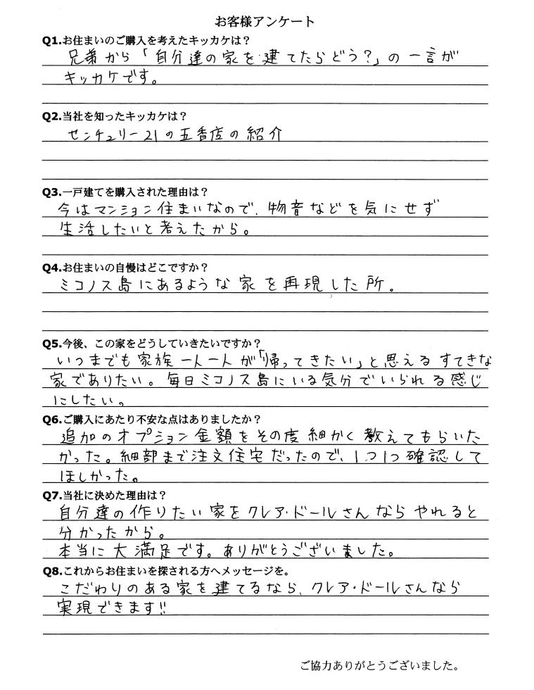 自分達の作りたい家をクレア・ドールさんならやれると分かったから。
