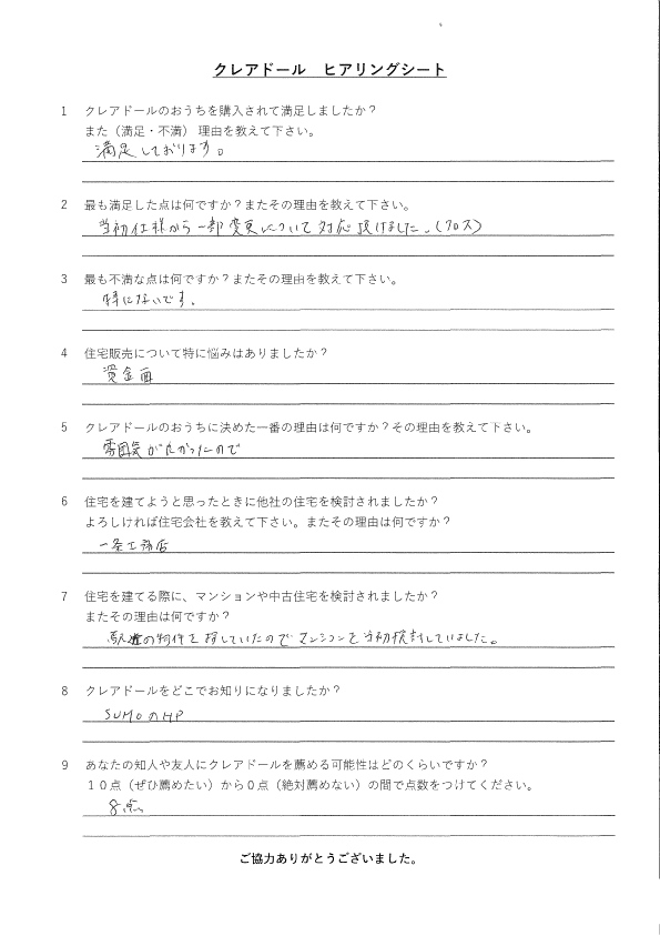 クレア・ドールのおうちを購入されて満足しましたか?