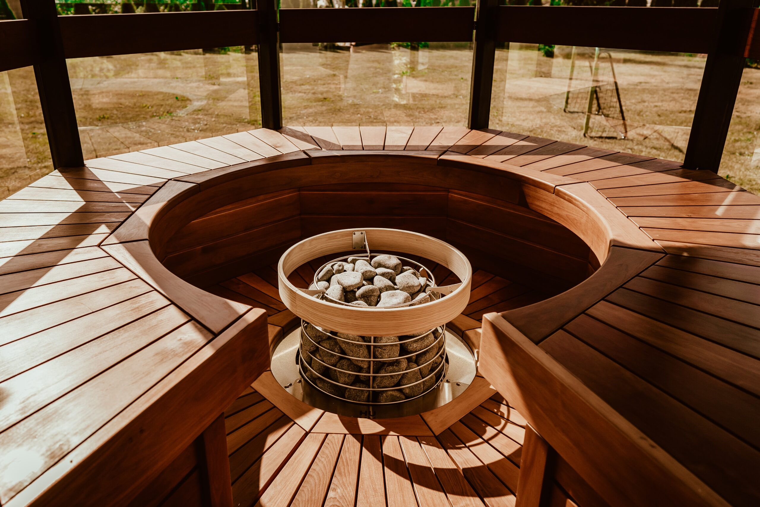 HIVE 電気サウナヒーターは、大きなサウナに最適なスタイリッシュなデザインで、スパやジムなどに設置するのに最適です。HIVE 電気ヒーターの蜂の巣を模したデザインは、石の自然な美しさを引き立てます。250kgもの大量のサウナストーンを内蔵することができ、長時間のサウナセッションでも穏やかで豊かなスチームを提供し続けることができます。ヒーターの内部は耐久性のあるステンレススチールで作られており、丸い形状は部屋の中央に配置することを考えて設計されています。北欧の自然を模したデザインにより、よりリラックスした心地よいサウナ空間を演出しています。