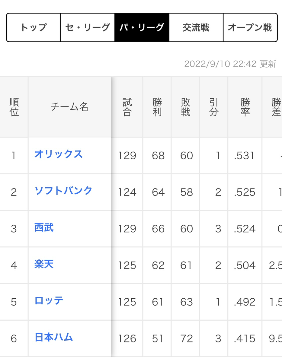 そんな中、我がオリックス軍が所属するパ・リーグの順位はというと…!