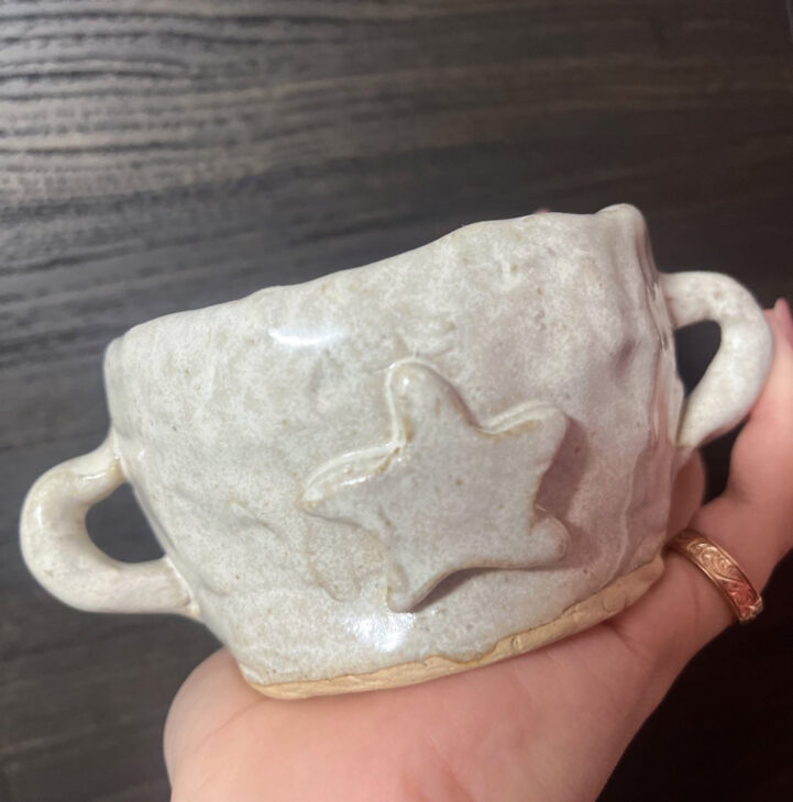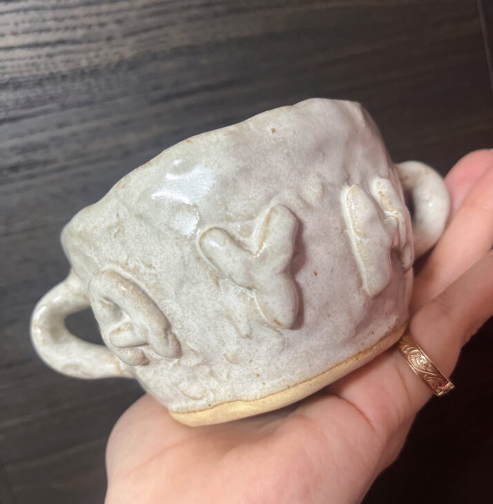 陶芸のお兄さんのアドバイスを受けちっちゃな取っ手を2つ付けてみました