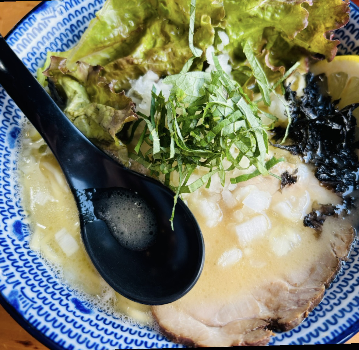大葉、檸檬でその濃厚さをカバーしていて飽きの来ないスープになっていました。