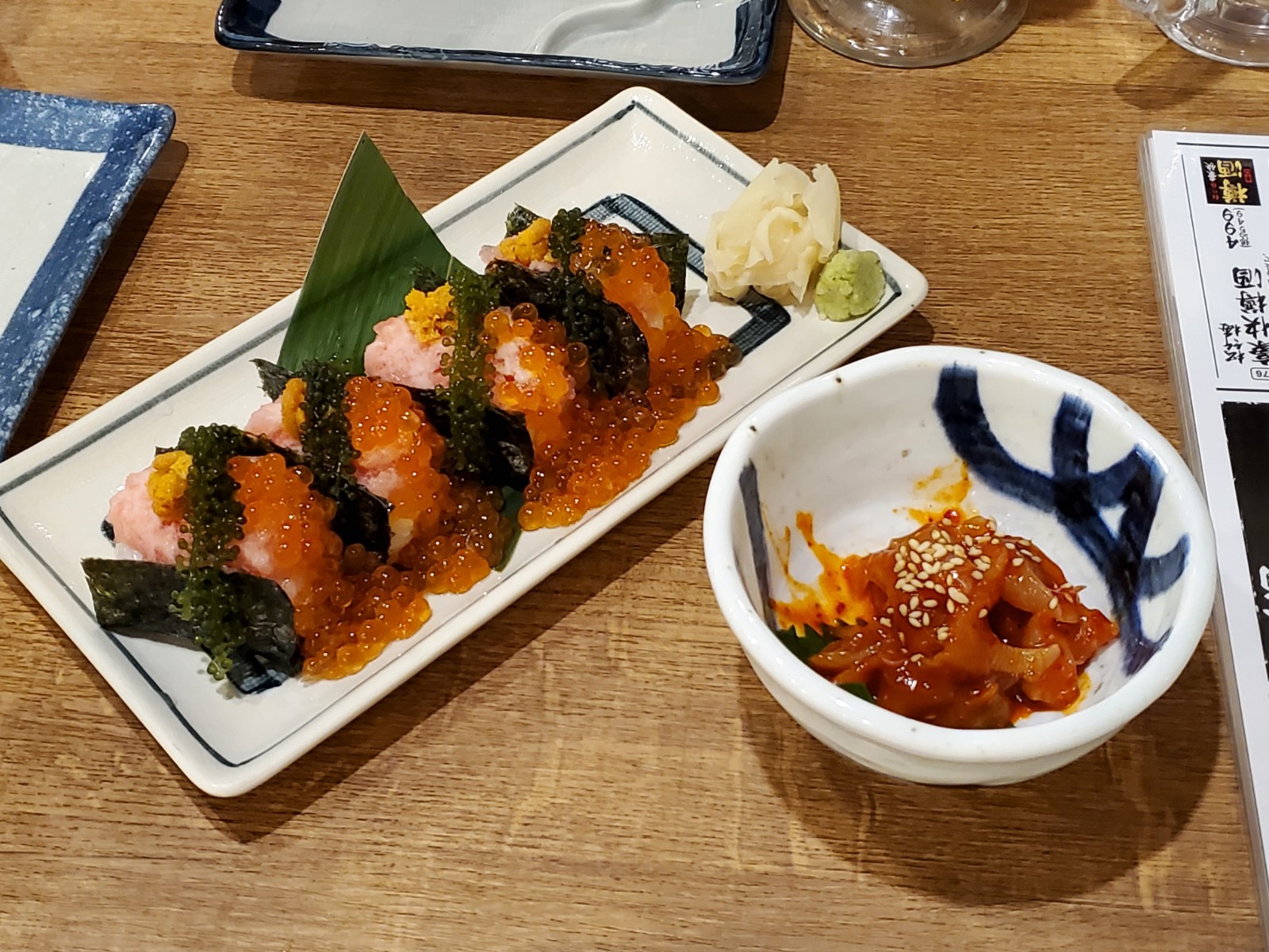 左のが、いくら・海ブドウ・ウニ・ねぎとろの軍艦