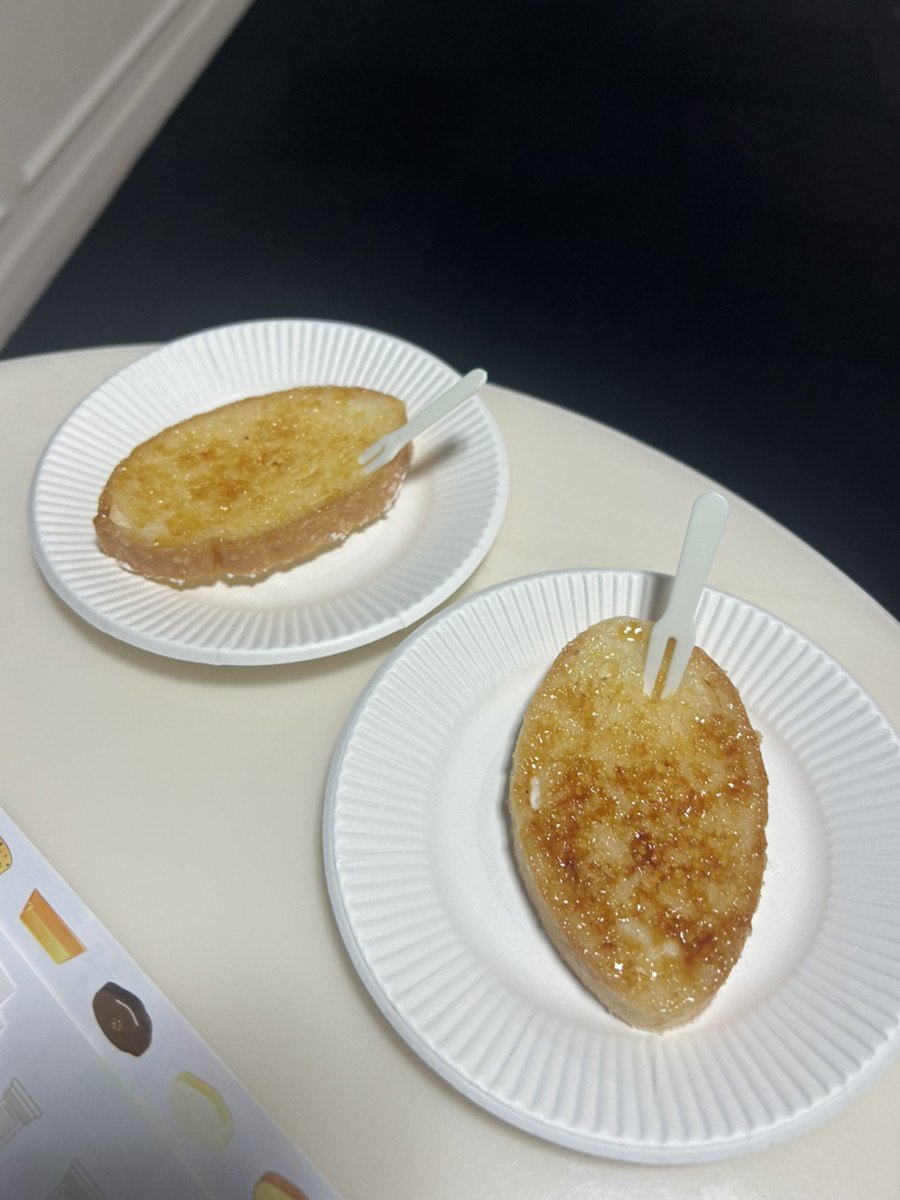 そしていろいろ展示を見ながら進んでいくと、フランスパンをキャラメリゼしたものをいただけました!