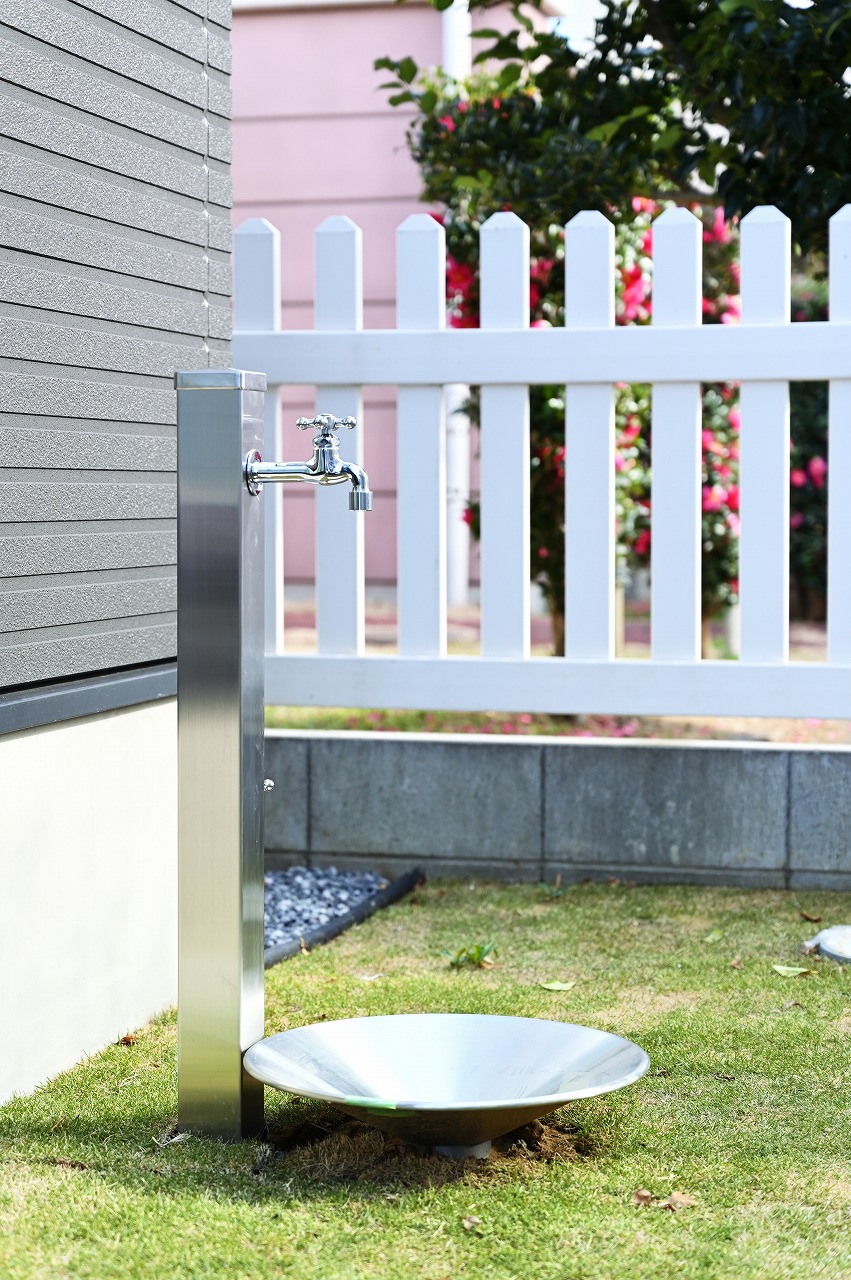 モダンストライプのサイディングでスッキリ仕上げ、光沢感のあるポリッシュシルバーの玄関ドアでスタイリッシュなデザインに。